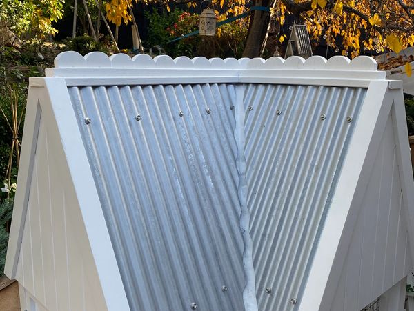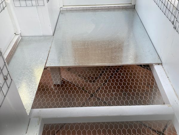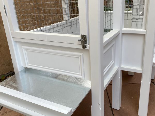 Stands at 2.2m tall, 1.2m wide, 0.7m deep. Ripple iron triple gable roof. Has removable galvanized metal floors for easy cleaning, large and small access doors. The roof is removable for easier transportation.